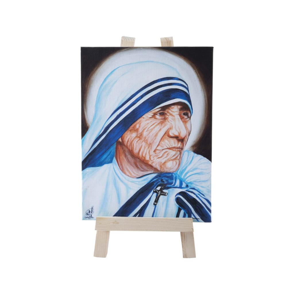 You may buy these easels with mounted canvas on them. It features original paintings that were digitally printed by hand- and mouth-impaired artists.