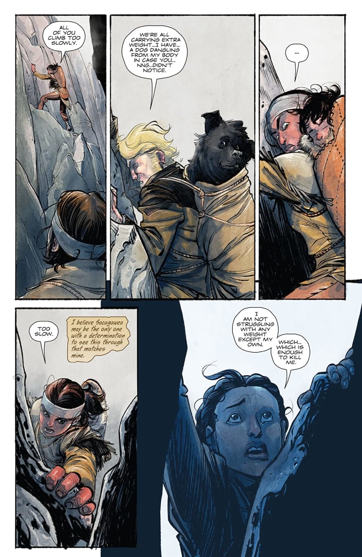 I love, love, love the way that this is being told. How we see the story & plot development through how the sequence of events unfold as well as how the reader learns information is presented exquisitely well. That we see this moving backward from the opening and what leads up to it is extremely well done. The character development is fantastic and how we see it through the dialogue, the character interaction and how they act and react to the situations and circumstances that they encounter is where most of this characterisation comes from. The pacing is incredible and as it takes us through the pages revealing more and more of the story, this world and the twists & turns along the way the reader is continually mesmerised by what we see.