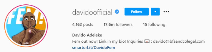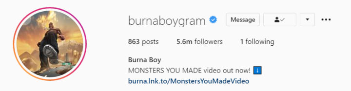 and Burna Boy has 5.6 MILLION followers.