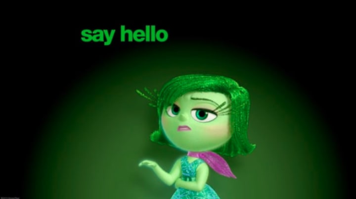 If Riley sees something she doesn't like she will be disgusted. Now we don't like that. But the disgust emotion will be there to help Riley look disgusted. Whether she's seen violence that she doesn't like or something unpleasant. Seem weird doesn't it.