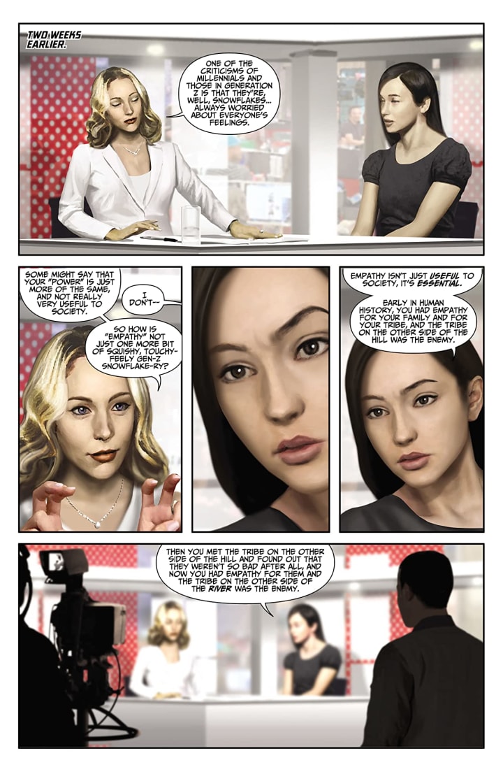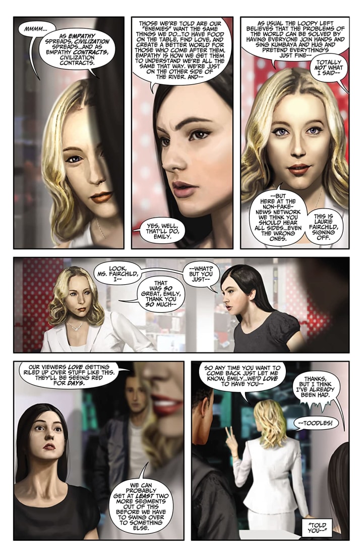 When Straczynski is on, the man is on and the not so irony of this issue is that he is able to convey that empathy to the reader in ways that are palpable, strong and very impactful. This hit me full on in the feels like a runaway freight train to the gut. It was that damn strong and well thought out and executed. Even with the representation of “the not-fake-news network” trying to railroad her and what she said this is not only as relevant as it gets but it’s just poignant and provocative nonetheless.