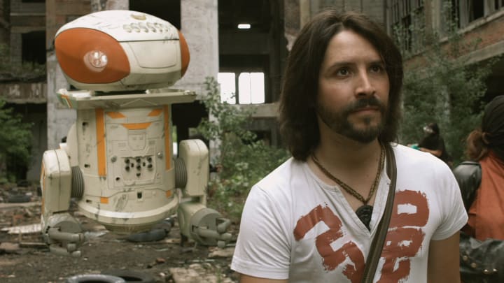 Experimental artist Matt Busch has directed his first feature film, the strangely charming, low budget, Aladdin meets the future flick, Aladdin 3477-1: The Jinn of Wisdom. This unique take on the Aladdin legend takes the young thief and beggar into a far future where major cities now float in the sky over the slums that remain on the ground and robots keep the classes divided by acting as future law enforcement. In this bizarre mix is Aladdin, played by Erik Steele as a schemer with a heart of gold.