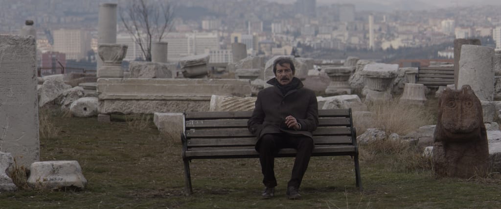 It's a shift so subtle and ingenious that you catch yourself being surprised by your own smiles and chuckles as the film progresses. All the while, Fikret only occasionally rises from his stupor. The brief and muted comedy and the murder mystery happen around him in the margins, even as he is the catalyst for it all through one big and surprising decision he makes. That decision briefly brings light to his life via his friendship with his assistant, Gamze (Ipek Turktan) who helps him unexpectedly.