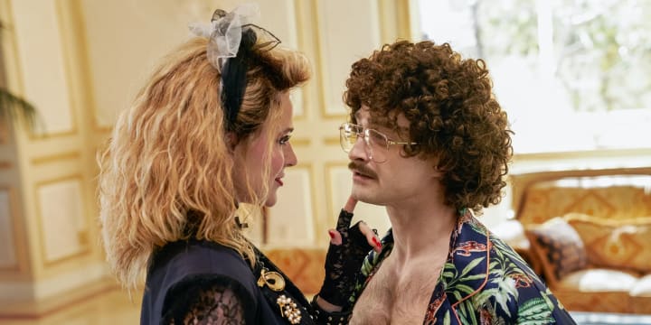This being a Rock N' Roll biopic, a love interest must be involved, a woman of ill-repute who follows our star down to the depths of his despair. That woman in Weird is Madonna played by Evan Rachel Wood. Sexually voracious and wildly talented, Madonna sets her sights on Al because of the supposed 'Al Bump,' a spike in sales following an artist being parodied by Weird Al and his band. Madonna wants the sales bump and will do anything she can to get it.