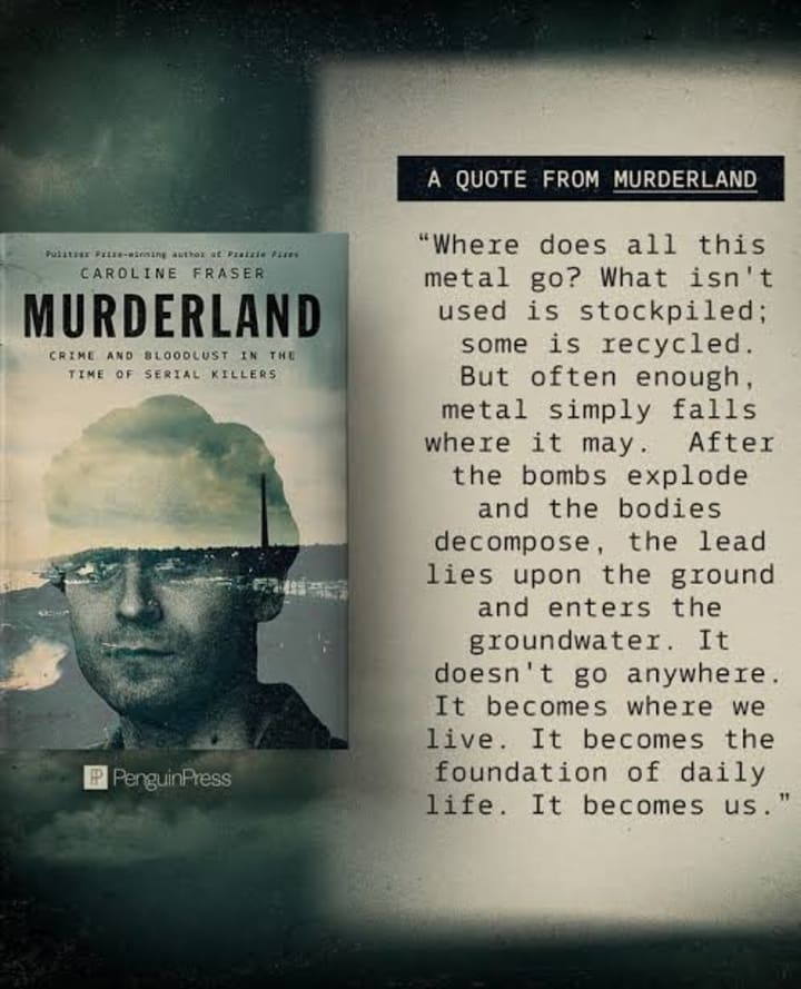 Fraser begins Murderland by setting the scene in the Pacific Northwest, a region known for its lush landscapes but also for its dark underbelly of serial violence during the mid-20th century. She focuses on the unusually high number of serial killers operating in this area, including Ted Bundy, who grew up near the ASARCO smelter in Tacoma, and others like the I-5 Killer, the Night Stalker, the Hillside Strangler, and even Charles Manson, who spent time in the region. Fraser questions why this region produced so many gruesome killers and why their crimes peaked and then declined. Her investigation leads her to the lead-crime hypothesis, which suggests that exposure to heavy metals, particularly lead, can cause neurological damage linked to aggression, impulsivity, and psychopathy.