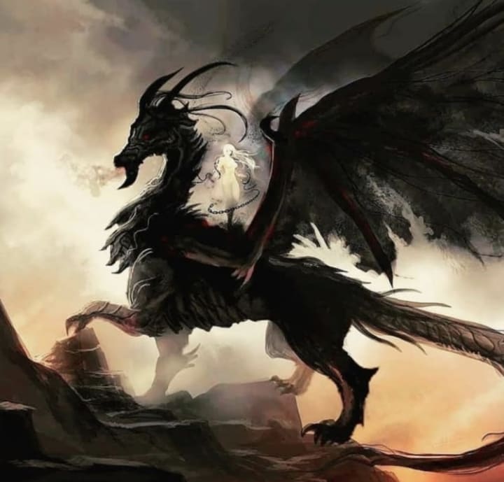 A creature emerges from the ground in the center of that desert. It was a Dragon black as night with brown piercing eyes so fierce that it would burn a hole through anything in its path.