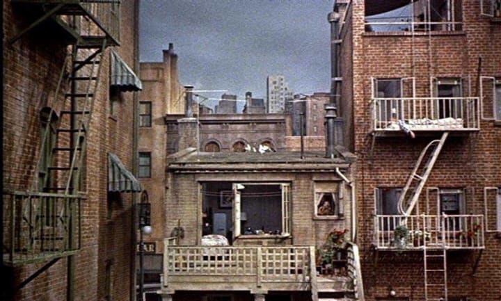 But, place that voyeurism in the hands of Jimmy Stewart and Grace Kelly, via the safe distance of a movie screen, and the juxtaposition of the crime of peeping in windows enters a realm of moral flexibility. If Jimmy and Grace, paragons of all American virtue can peep in windows, certainly it’s okay for us to join them, right? Plus, they have the virtuous cause of solving a murder. Nevermind the time spent objectifying Miss Torso (Georgine Darcy) or casting judgments upon Miss Lonelyhearts (Judith Evelyn) or ‘The Songwriter’ (Ross Bagdasarian), whom we also frequently peep on, it’s about catching a murderer you guys. This is voyeurism with a just cause.