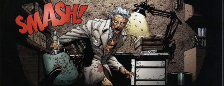 The poor bastard thinks he's working on a cure for cancer only to find he has become a victim of his own experiments. It's dark in tone and has a brutal ending as you can imagine.