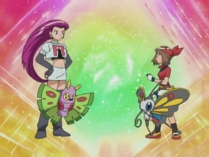 When Cascoon does evolve, Jessie is surprised, but ultimately decides Dustox is better than May's Beautifly, and develops one of the closest relationships with it of any Pokemon she had previously kept. Jessie may be a criminal, but one of her main redeeming qualities is love for her Pokemon.