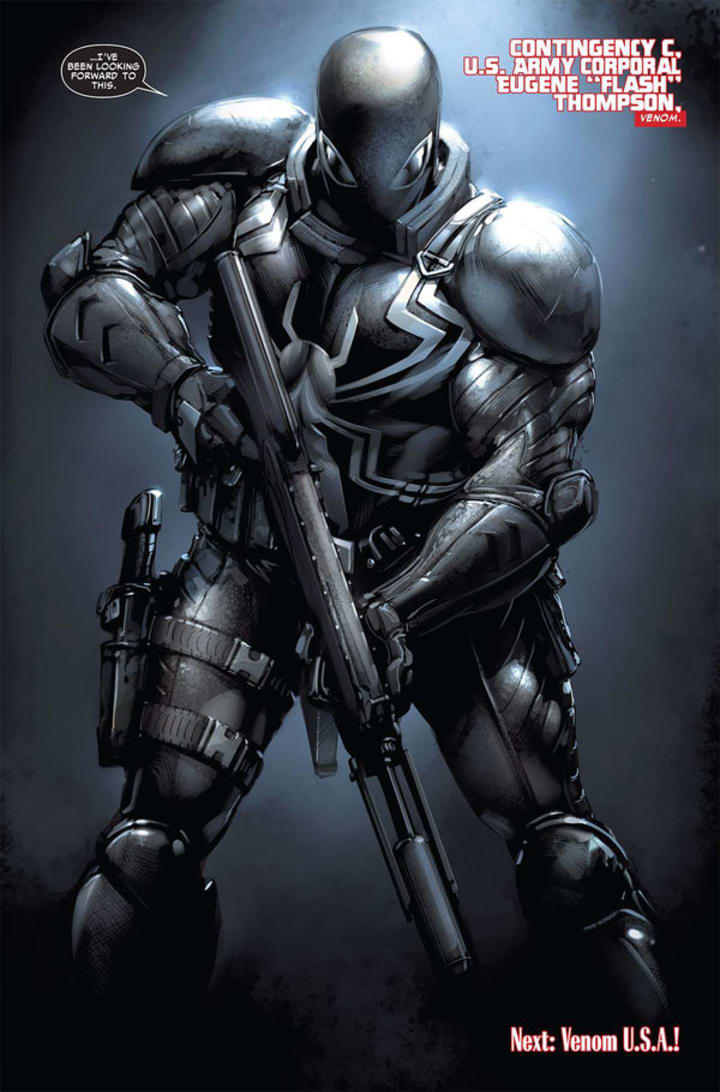 We can be pretty confident that this is never going to happen in the MCU. Homecoming's Flash Thompson is hardly the type of guy to become a military man in the first place, while Sony has their own plans for Venom.