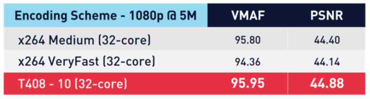 Overall, the T408 delivers dramatic reductions in CAPEX and OPEX and significantly cuts carbon emissions as compared to other production alternatives, all while producing quality similar to CPU-only transcoding. With a highly functional resource management schema and FFmpeg and GStreamer integrations, implementing a T408-based solution should be fast and simple for most streaming producers.