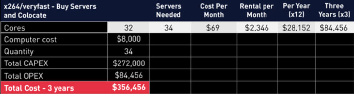 THE X264 CODEC/VERYFAST PRESET BY BUYING AND COLOCATING THE SERVERS.