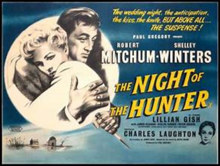 Director Charles Laughton directed the 1955 film “Night of the Hunter.” It starred Robert Mitchum, Shelley Winters, and Lillian Gish. The film is based on the novel of the same name by Davis Grubb. Both the novel and the film are based on the true story of Harry Powers, hanged in 1932 for murdering two widows and three children in Clarksburg, West Virginia.