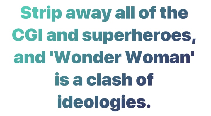 This, I firmly believe, is one reason Wonder Woman proved so successful. Strip away all of the CGI and superheroes, and this movie is a clash of ideologies. On the one hand, you have Ares, who believes that man is irredeemable. On the other, you have #WonderWoman, who believes that human beings are not beyond redemption. That final battle is won because Diana sees Steve Trevor's willingness to give his life for others, and is persuaded that the light of love in the heart of men will always break through the darkness. This is philosophical debate presented to us as a superhero spectacle, with Diana championing our cause. She stands for something.