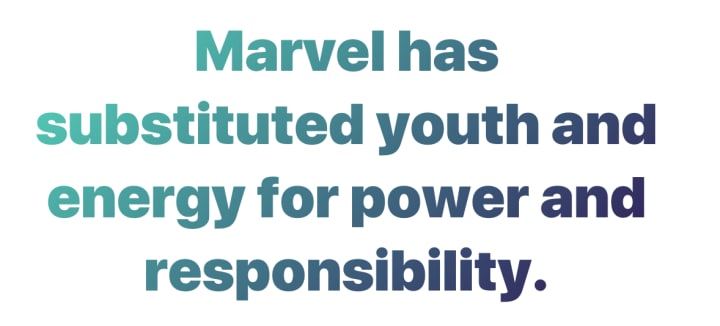 Even Marvel Studios can miss it. The core concept of Spider-Man, for example, is a simple message; "With great power comes great responsibility." The greatest weakness of #SpiderManHomecoming is, fundamentally, that the film doesn't explore this theme at all. Peter isn't motivated by a sense of responsibility; instead, he simply thinks superheroism is cool, and wants to impress Tony Stark.