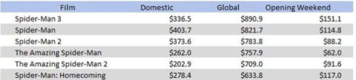 So far, Homecoming is a triumph in the domestic box office, but the global takings are a little more sluggish than you'd expect. That doesn't mean the second reboot is a failure, though; instead, it suggests that Homecoming simply has strong competition, and that the delayed release in China is really hurting the film's performance. Still, with a production budget of just $175 million, Homecoming was the cheapest #SpiderMan movie to date. By any measure, it's a tremendous success.