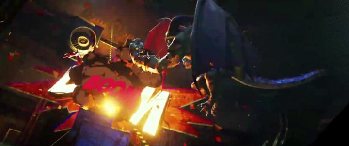 The trailer does feature interior thought bubbles and also sound effect words like the one in the image above. This is going to be a new type of superhero film.