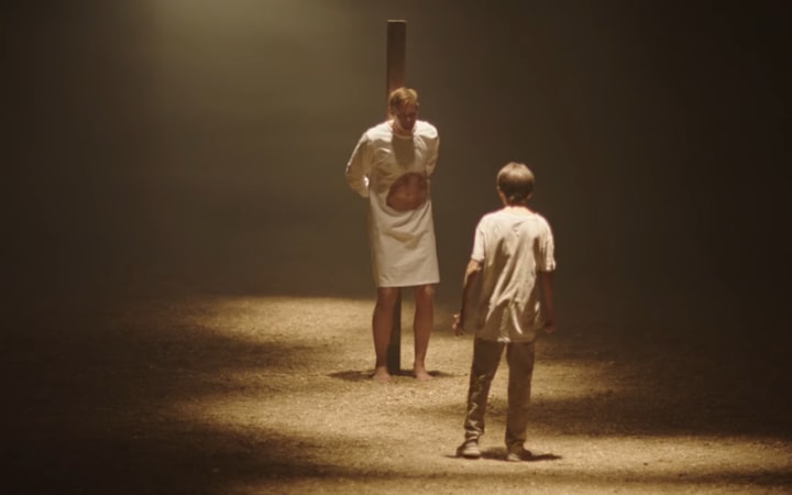 James is arrested while his wife and the Bauer's are detained. The investigating detective, played by Thomas Kretschmann, tells James that the punishment for his crime is death. The family of the man he killed is allowed to exact their revenge by executing him themselves. But, there is a way out. For a hefty fee, the cops will make a complete clone of James, one with all of his features and memories, and that clone will stand-in when James is put to death. The only catch is that James will have to watch his own execution. James agrees and is forever changed by seeing himself be gutted by the oldest son of the man he killed.