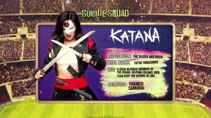 Over in the comics, Katana has been associated with the Batman-centric superhero team known as the Outsiders! Here, she's evidently making her cinematic début working alongside Colonel Flag in trying to keep the Squad together. Good luck!