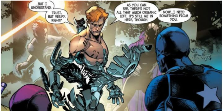 A founding member of both the Avengers and the clandestine Illuminati, Stark has always had one eye on the future, even if it’s meant making the hard decisions no one else wants to make -- including destroying entire worlds. In spite of this -- or perhaps because of it -- Stark finds himself opposed to Captain Marvel’s use of precognition to stop crimes before they happen. Apparently, committing genocide will do that to a guy.