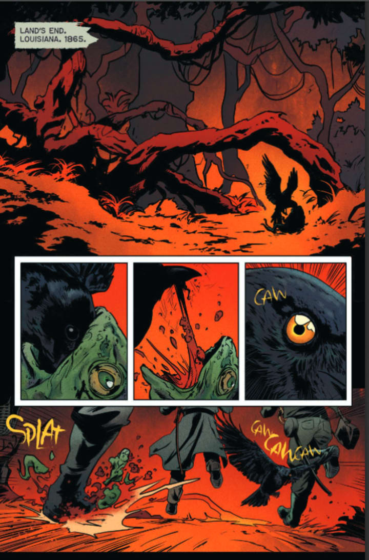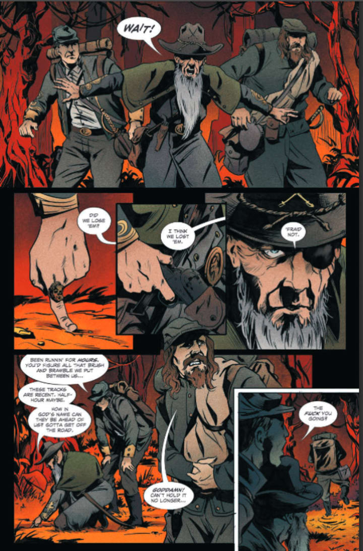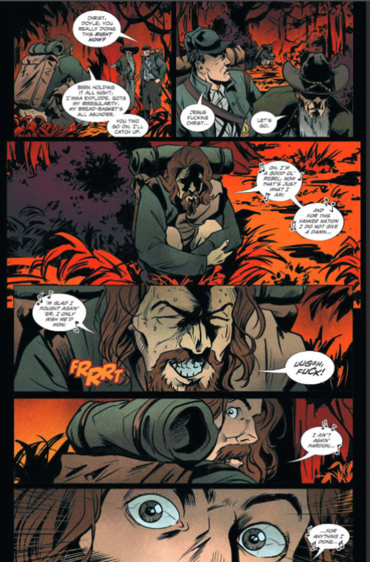 Well alright I’m always a sucker for a zombie story and what better place for a group of Confederate soldiers to be resurrected than a dirty, nasty old swamp? So what I am hoping we’ll learn is why these soldiers, what triggers their rise from the grave and what will send them back into the earth? It’s fundamentals 101 I suppose and I’m hoping that over the course of the story all these questions will be answered and then some. From what we see here it looks like some things are alluded to but I can’t wait to see the full story unfold as the swamp once more begins to run red with blood.
