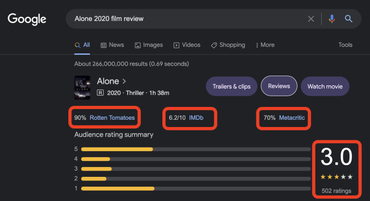 As you can see in the below image. Rotten Tomatoes at the time of this article has given it a %90 fresh, but general Google Reviews is middle of the road.