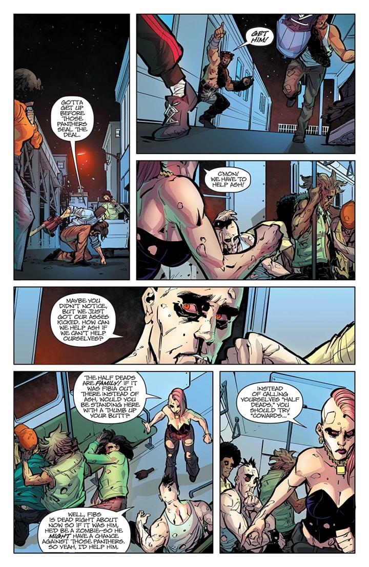 I’m a huge fan of the way that this is being told. The story & plot development that we see through how the sequence of events unfold as well as how the reader learns information are presented exceptionally well. The character development, which is truly sensational for just an FYI, that we see through the dialogue, the character interaction as well as how we see them act and react to the situations and circumstances which does a magnificent job in continuing to flesh out the personalities. The pacing is excellent and as it takes us through the pages revealing more of the story we’re constantly reminded just how much fun Ash is.