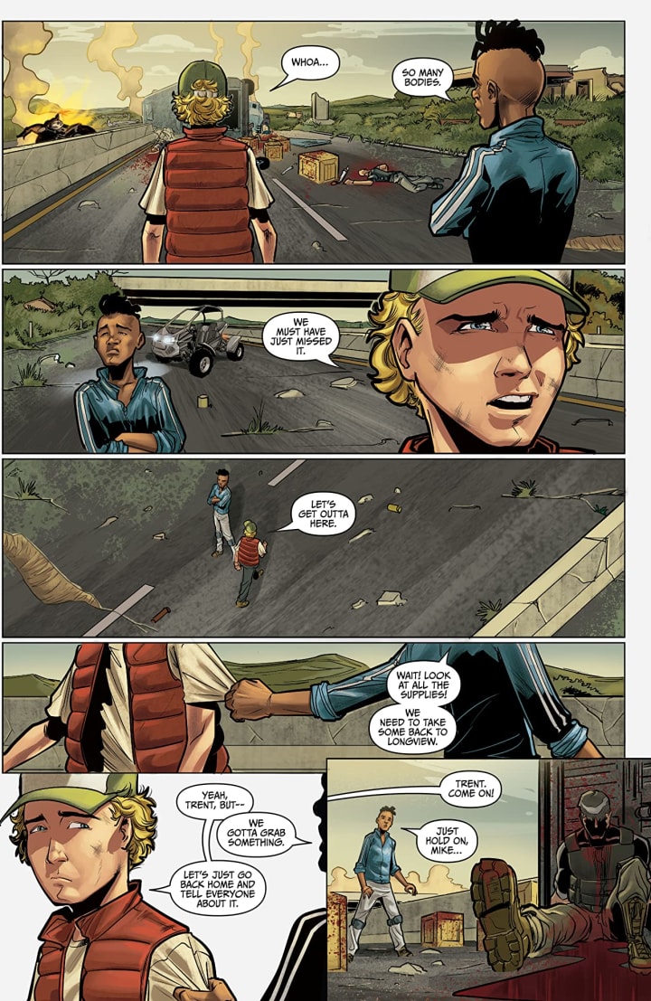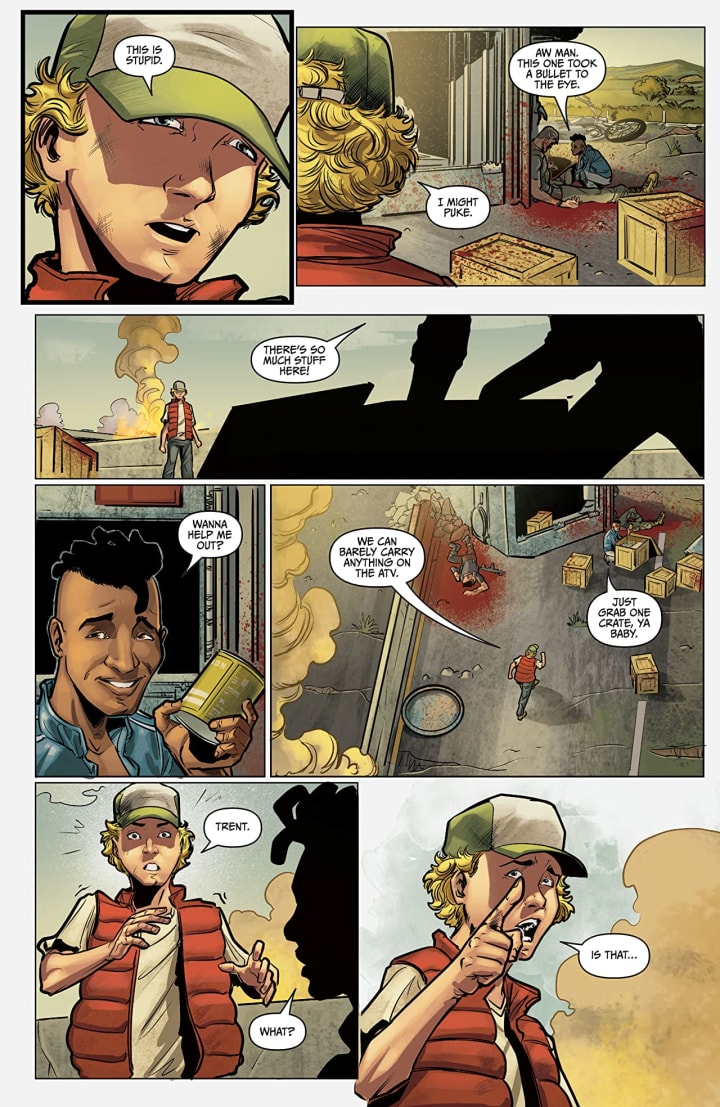 I am super impressed with the quality and level of storytelling in this issue. To see the growth in writing from Ralph is one wonderful and this creative team makes this feel like a viable and interesting world is stellar. This is a richly filled world with interesting characters and a dynamic that says if you aren’t a hunter then you are prey, whether it’s in the society you live or on the highways and byways you’d best sleep with one eye open.