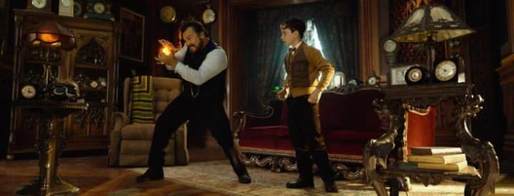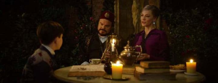 As I mentioned earlier, the first part is highly entertaining. Lewis is being introduced. He meets uncle Jonathan Barnavelt (Jack Black) and his neighbor Florence Zimmerman (Cate Blanchett). And, of course, there’s this huge Victorian-looking house with its ghostly contours. As a spectator, you notice there’s something very unusual going on and certain ordinary things come to life (and in normal circumstances they never do). Something that Lewis only discovers afterward. We then see Lewis attending his new school and how he befriends Tarby (Sunny Suljic), the popular boy who briefly raises Lewis’s popularity. All this is brought with the necessary humor and is highly entertaining for young and old. Even the presence of Jack Black was bearable. I’m not really a big fan of Black’s humor. Usually, it’s bland and ridiculously exaggerated. That is why a similar scene with a lion-shaped bush with stomach problems is being used three times. Bland, trite, and exaggerated toilet humor.