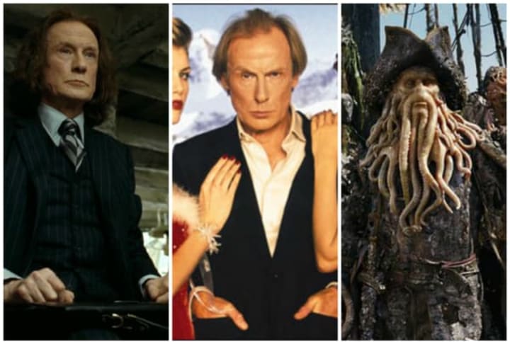 Left; Bill Nighy in Harry Potter [Credit: Warner Bros]. Center; Bill Nighy in Love Actually [Credit: Universal Pictures]. Right; Bill Nighy in Pirates of the Caribbean. [Credit: Walt Disney]