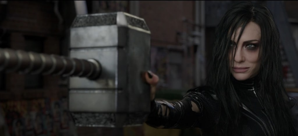 As we'd expected, that suggests the meeting with Odin takes a turn for the worst when Hela appears on the scene. Odin has imprisoned her for millennia, and there are rumors she has an even more personal reason for her hatred of the All-Father. We don't yet know what happens to Odin, but it seems this encounter costs Thor his hammer.
