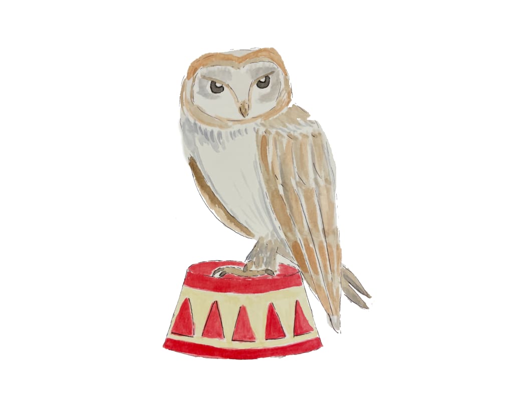 The applause makes me nostalgic. I used to perform, but I’ve grown tired. My head rotation and hooting bit was known as the best barn owl act in town. But now, I’m retired and spend my days in my enclosure watching the younger performers showcase their talents. Although I was sad when my act was discontinued, I now enjoy being a spectator.