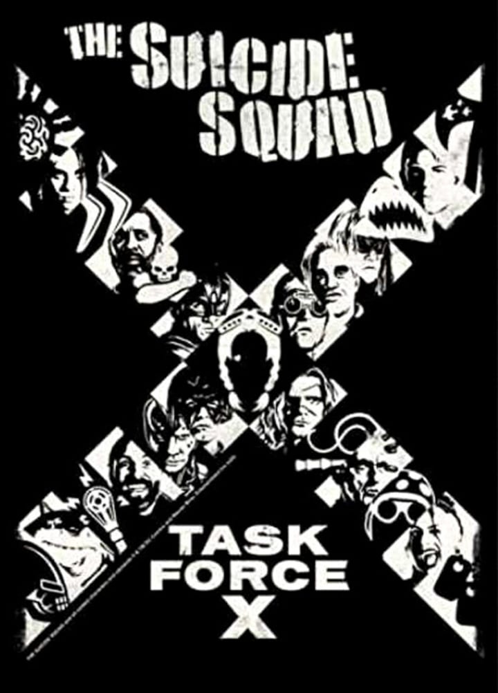 The first features the team's alternate name, Task Force X, with Harley Quinn front and center.