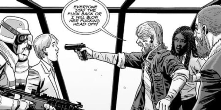 If this comic storyline is adapted into The Walking Dead's final season, things will obviously play out rather differently. Rick has been missing, feared dead since season nine, and while actor Andrew Lincoln has recently been spotted hanging out with Norman Reedus in Georgia, where the show is filmed, he wasn't around during the filming of the currently airing batch of episodes, in which this storyline would most likely take place. Meanwhile the show's Dwight, played by Austin Amelio, was banished by Daryl at the end of the 'All Out War' story arc, and crossed over to eventually become a regular on spin-off series Fear The Walking Dead, where the character was reunited with his wife, Sherry.