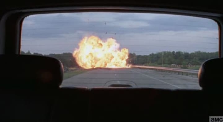 When the group starts moving the vehicles, Michonne discovers something not too far off in the distance. When the group approaches the unseen area, they discover a tripwire with multiple sets of dynamite packs on the road. The device has all of the dynamite set to ignite at once as soon as some unsuspecting passerby sets it off. Rick's group disables the bomb and keep the dynamite for a future purpose.