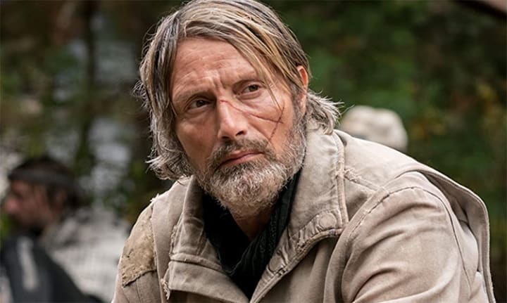 Viola Eade (Ridley) crash lands on New World, determined to find a way to communicate with the people on her ship. Todd discovers her and, of course, is in awe of the fact that she's a woman. Todd ends up protecting Viola from the town's manipulative and aggressive leader, David Prentiss, played by Mads Mikkelsen.