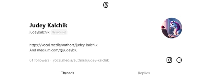 - I have links to both my Vocal and Medium profile in my Threads profile header. I want to make it as easy as possible to find me when people are ready to read. (Pro Tip: This is a good time to look at your Vocal profile and tidy it up for new readers. Do you need a new bio? Header? Change up your pinned stories?)