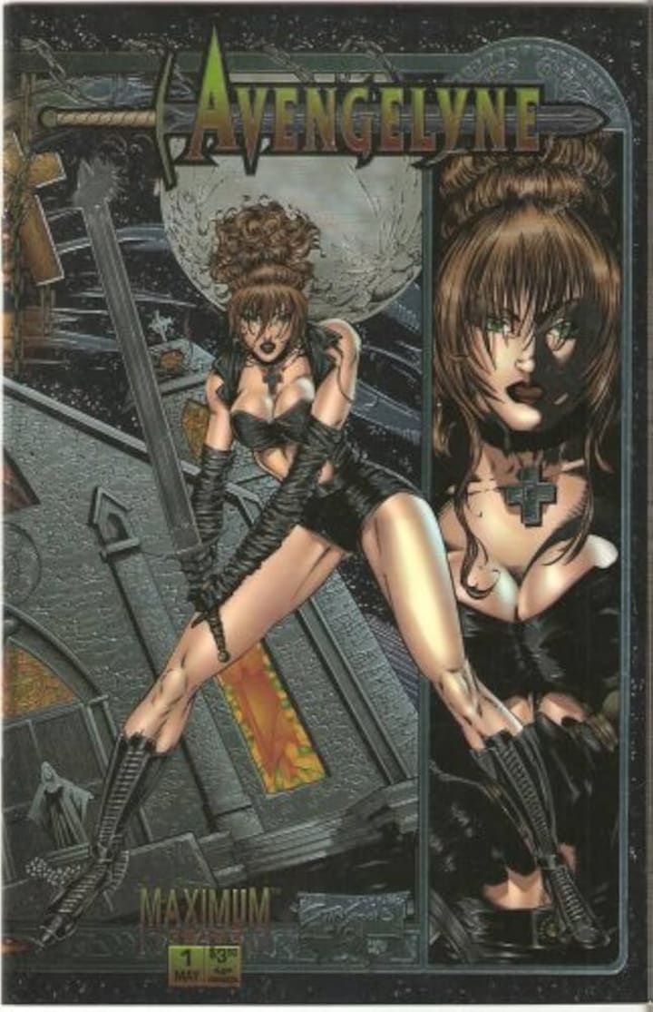 Created by Rob Liefeld and Cathy Christian (who often modelled for variant cover images and on whom the character’s likeness was based), Avengelyne is or was an angel of God who was cast out of Heaven to earth as punishment for questioning God’s judgement. Quite why God would throw out one of his angels for simply asking an honest question is beyond me, so don’t ask.