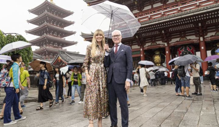Making the Cut episode 8 is set in the high fashion world of Tokyo, Japan. Heidi is first seen rocking a couture kimono made for her by an unnamed Japanese fashion designer. She notes that it took 45 minutes just to put the kimono on. She looks gorgeous but that’s a lot of work for a look that will be on screen less than 2 minutes in this episode. Fair to assume that indulgence is going to be a big part of the aesthetic of Making the Cut.