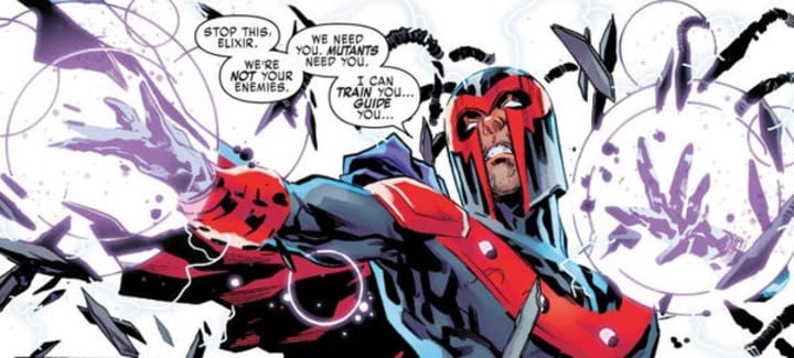 Elixir greeted by Magneto's X-Men. Image: Marvel Comics