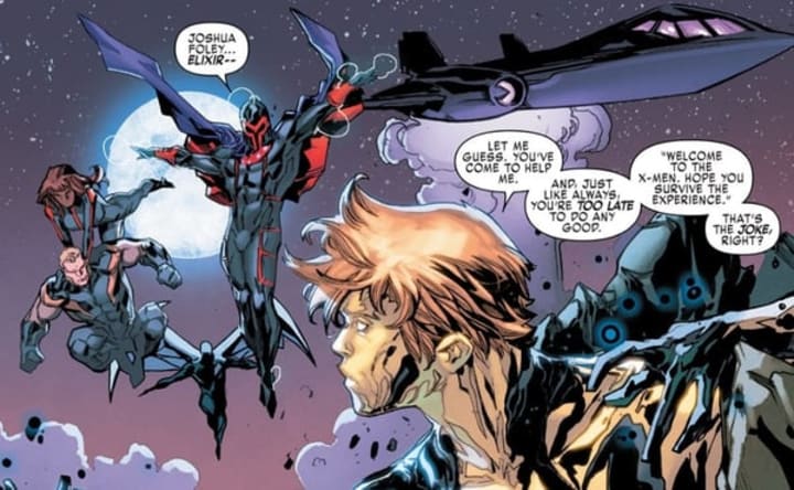Here's the catch: in recent years, poor Elixir has been quite ill-fated. He was killed off over in the pages of 2015's Wolverines comic, only to be mysteriously resurrected — and recently killed again. In this year's Uncanny X-Men Annual, Cullen Bunn has revisited the character.