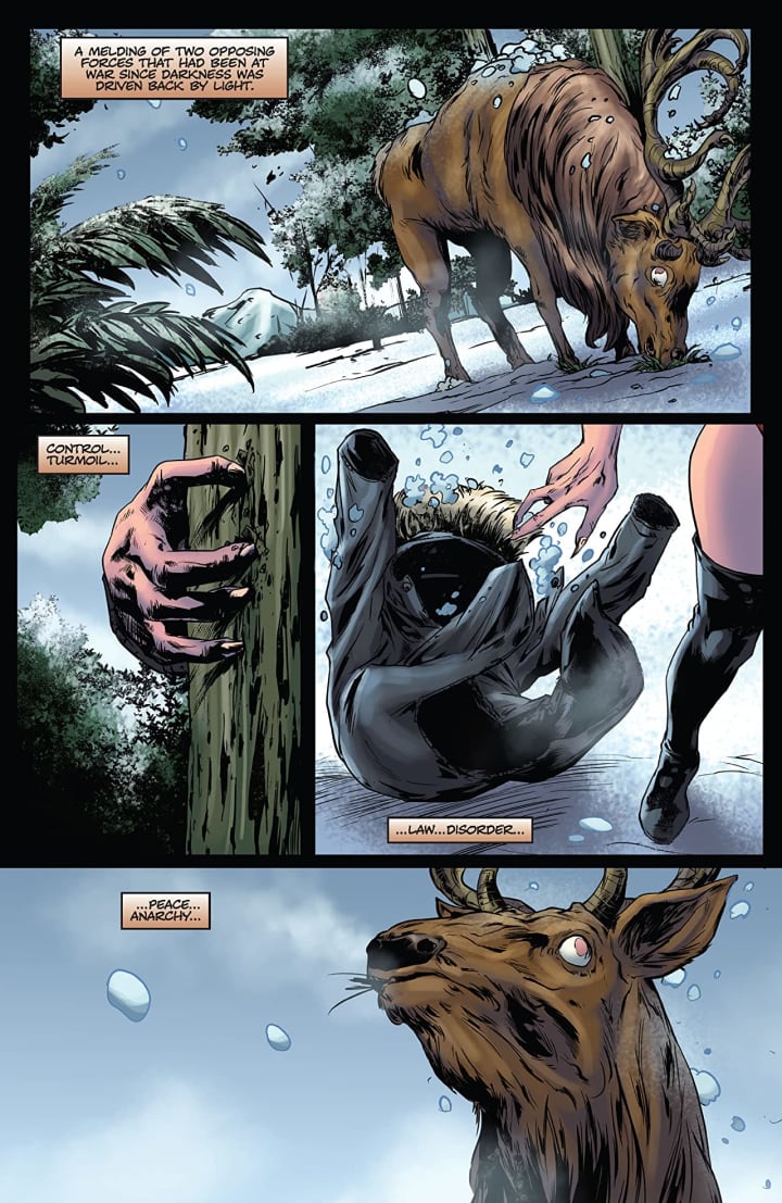 The interiors here are absolutely bloody brilliant to see. The linework is exquisite and how we see the varying weights and techniques being utilised to create this level and quality of detail work we see throughout the issue is truly extraordinary. This goes hand-in-hand with the creativity and imagination as well because some of these creatures shouldn't exist but look amazingly real. The way that we see backgrounds being utilised throughout to enhance and enhance the moments as well as how they work within the composition of the panels to bring out the depth perception, sense of scale and the overall sense of size and scope to the story. The utilisation of the page layouts and how we see the angles and perspective in the panels show a masterful eye for storytelling. The various hues and tones within the colours being utilised to create the shading, highlights and shadow work show such a stellar eye for how colour works and how to maximise their effects.