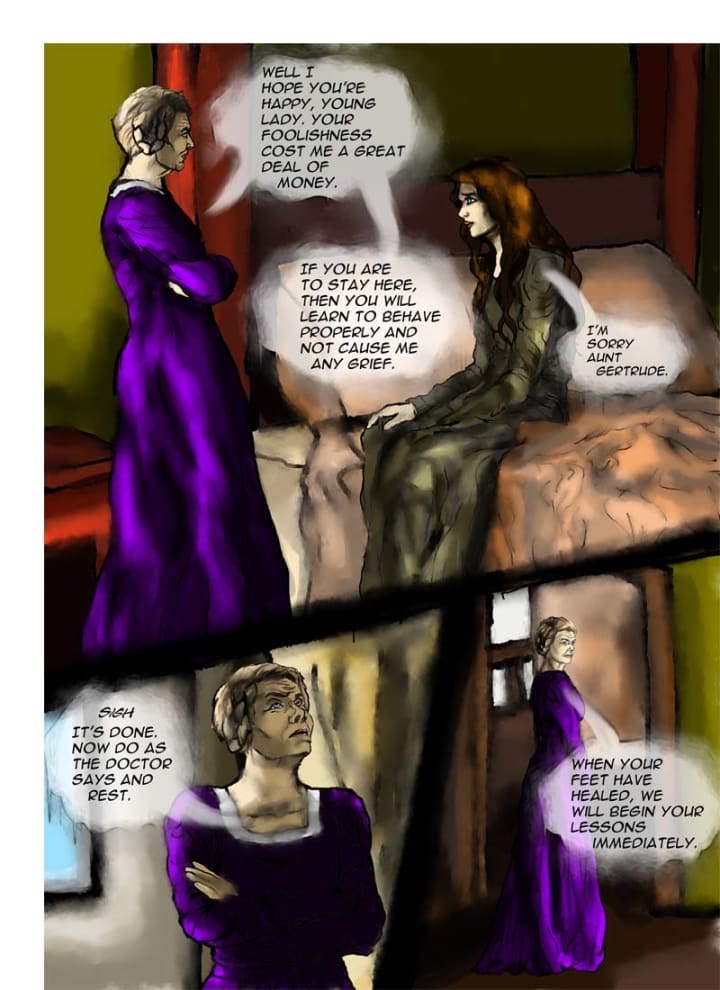 “I’ll see to it.” Gertrude said. “Thank you doctor.” She pulled out three coins and dropped them into his outstretched hand before calling for a servant to take him to the door. She shut the door to Klara’s room and turned her cold stare at the young girl.