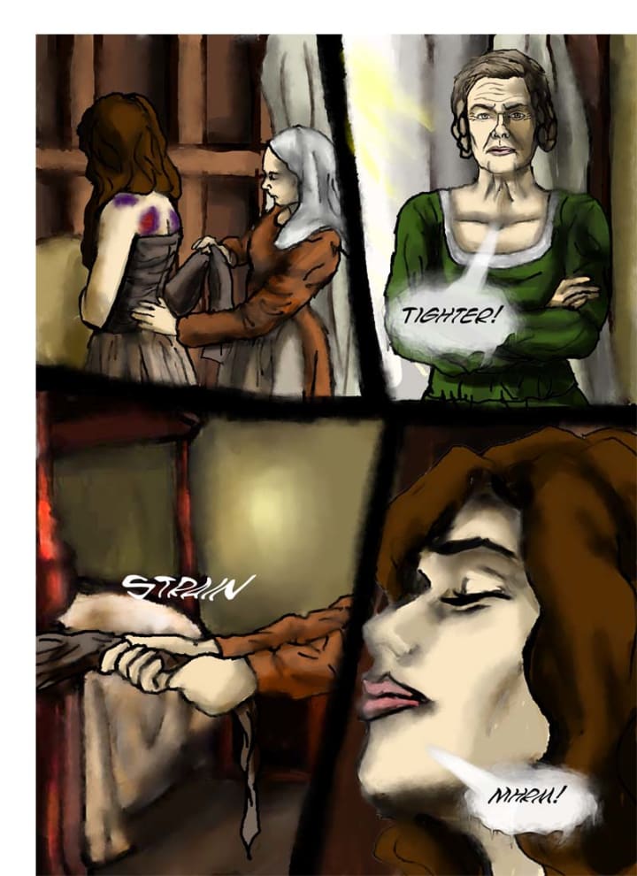 “Tighter!” Gertrude ordered. The maid nodded and tugged as Klara gasped for breath.
