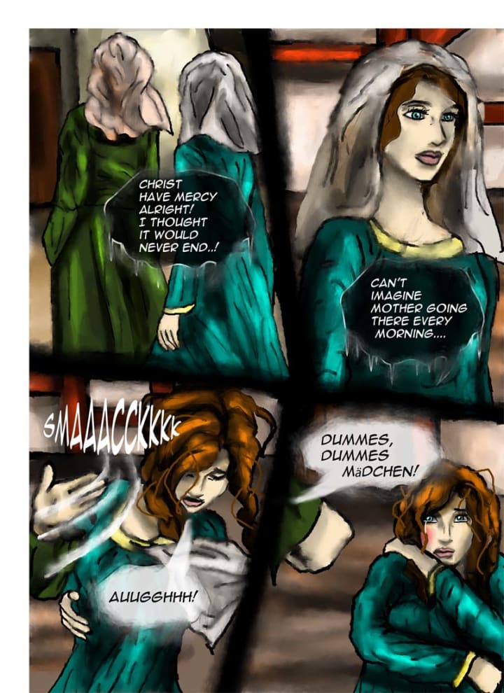 “Dummes, dummes Madchen!” Gertrude shouted as Klara, stunned, collapsed to the floor.