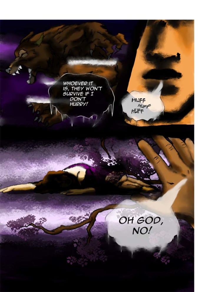 Randolf reached another clearing and he slowed, seeing a dark figure sprawled on the ground, motionless. He panted as he came to a stop and transformed back into his human form. He didn’t know who or what it was, but it was safer to appear human than otherwise. He pushed aside some branches and his heart stopped. The very woman he’d been thinking about, was laying on the cold ground.