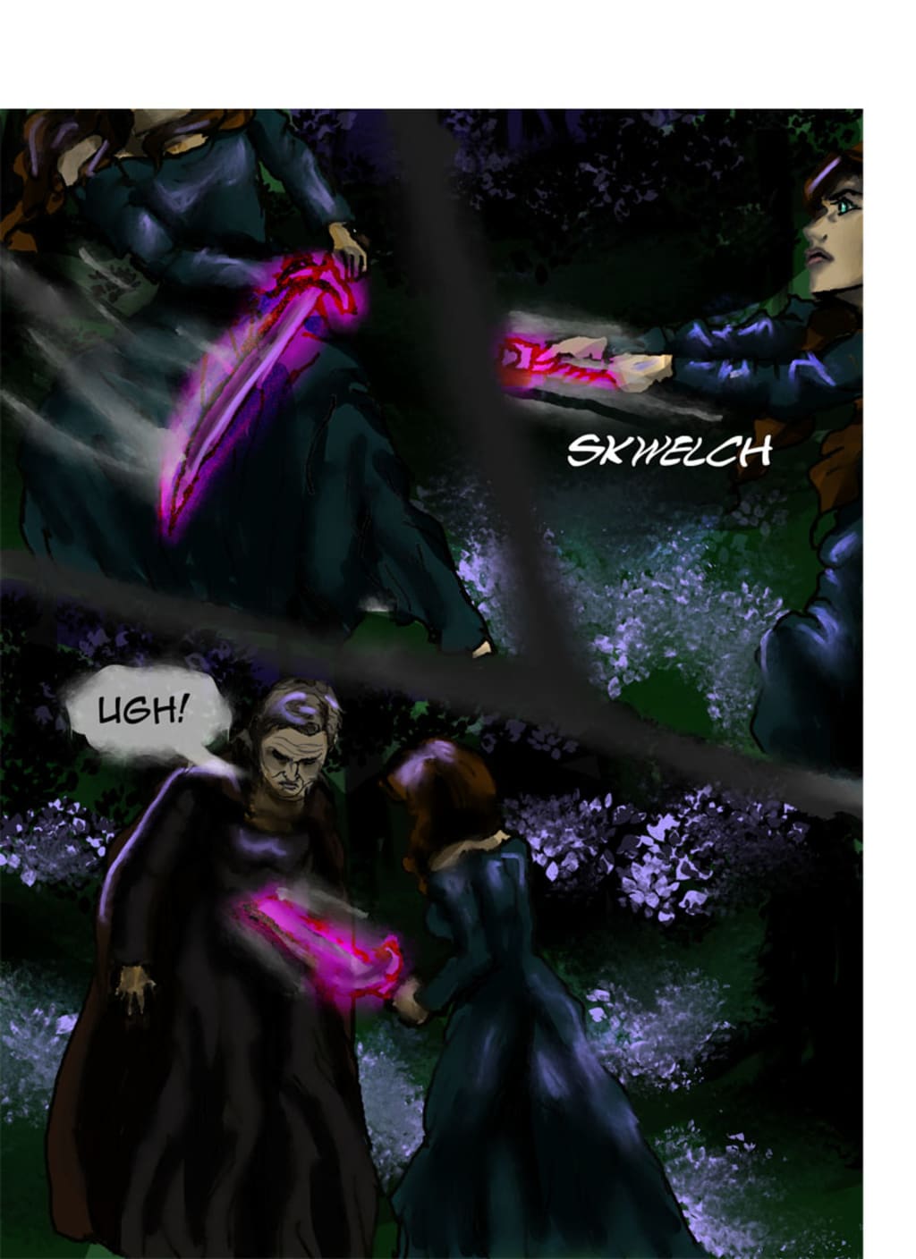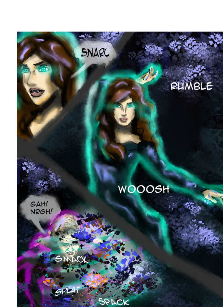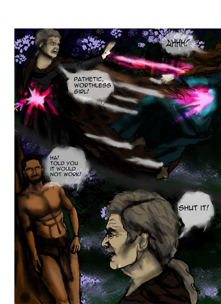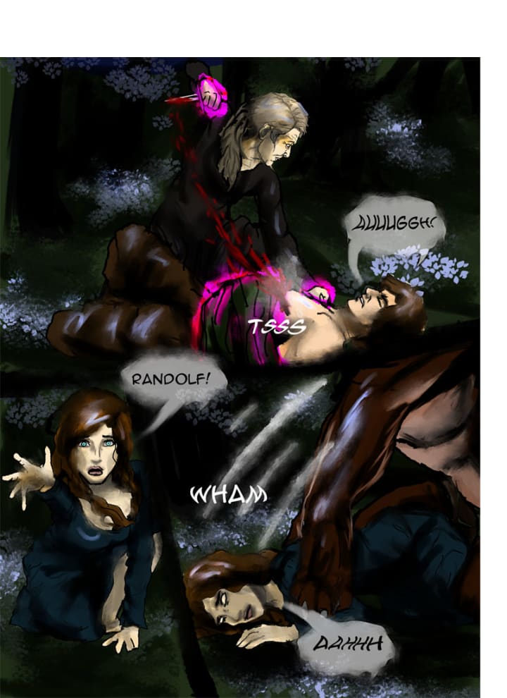 “Randolf!” Klara rushed forth but was pinned by Gerrick. Gertrude ripped out the knife, pinned Randolf with thorny vines and pressed her knee into the wound. He yelled in agony.