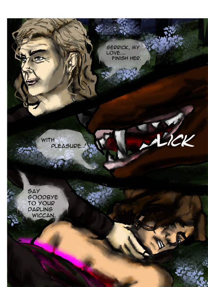 “Gerrick, finish her.” Gertrude commanded. She grabbed Randolf’s chin and forced him to look as Gerrick’s jaws clamped down on Klara’s right shoulder, tearing through flesh and bone.