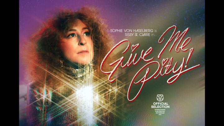 Sophie Van Haselberg is a revelation. She's incredible in this movie. I kept wondering why she looked so familiar and when I saw that she's Bette Midler's daughter, it clicked, I've seen her mom perform on shows not unlike the variety special in Give Me Pity. I can recall Bette Midler wearing similar costumes and crooning in the same way Sissy does in this movie. That's not to say that Van Haselberg is in her mother's shadow but rather that being Bette Midler's daughter adds a delightful layer of meta-commentary that requires another viewing to fully unpack. Give Me Pity is a must see when it becomes available.