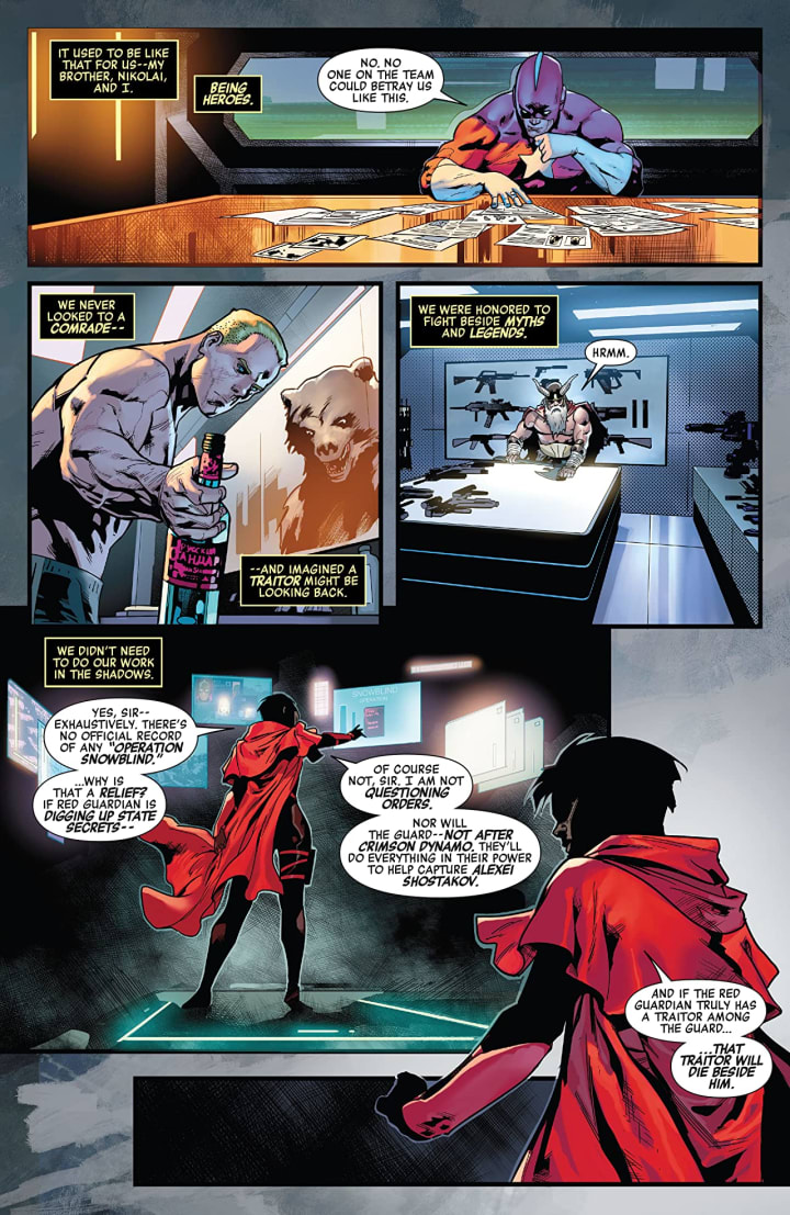 The Winter Guard team must split up in hopes of catching up to Red Guardian and the White Widow, who seem to always be one step ahead of them. It’s a race across Russia as the team must venture to Red Guardian’s hometown in hopes of discovering the secrets of project SNOWBLIND. But with Crimson Dynamo in critical condition, can the Guard keep it together to uncover the truth in time?